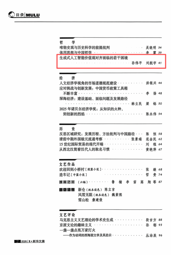 《新华文摘》全文转载我院孙伟平教授文章