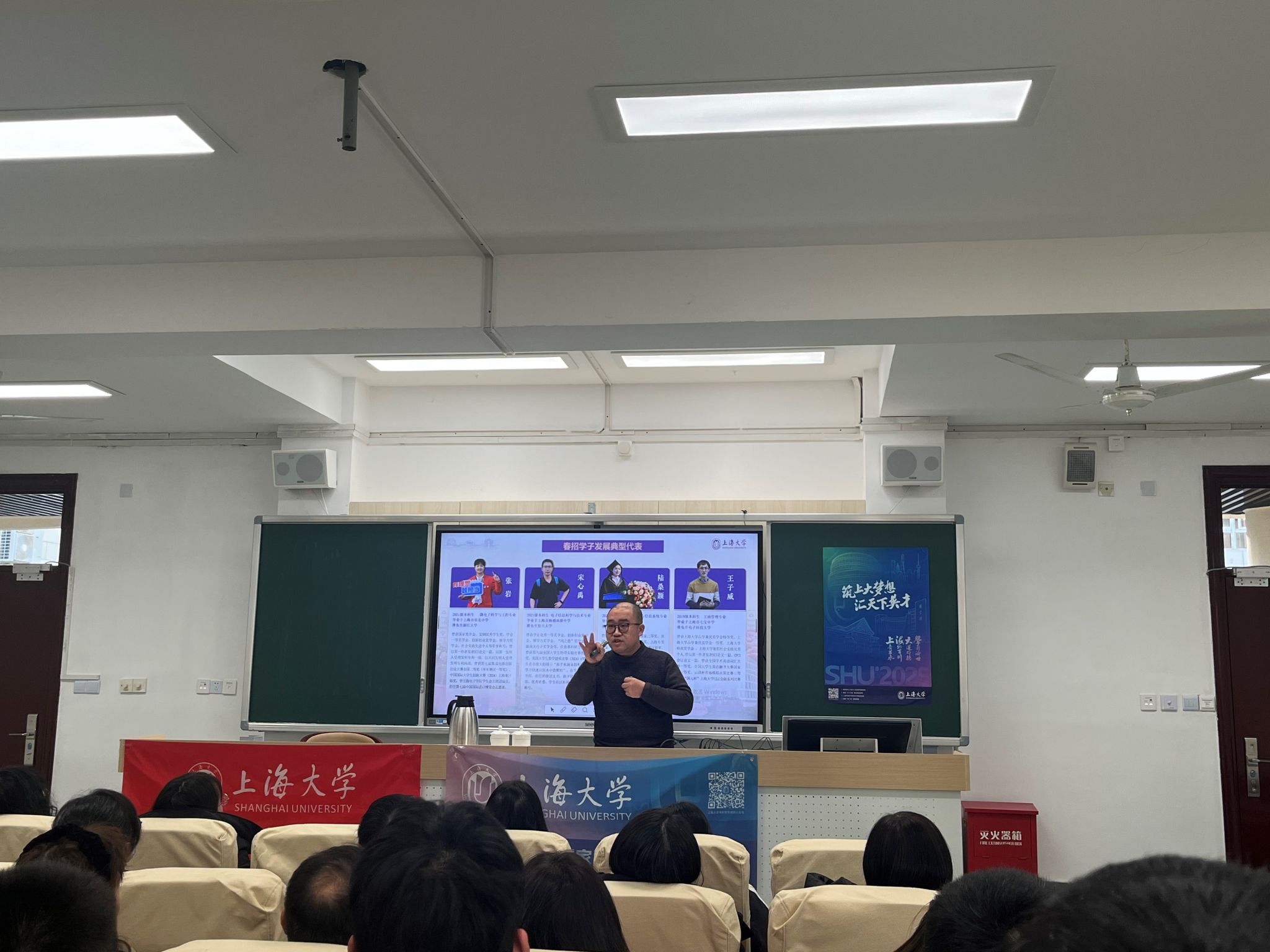 作为“我为上大代言”活动控江中学组成员,我校材料学院高分子材料与工程专业田蔚然同学分享了自身在上海大学学习生活和成长的亲身感受,欢迎更多的学弟学妹报考上海大学,收获进步和成长。 宣讲结束后,师生家长与招宣组热烈互动,招宣组一行耐心解疑答惑。