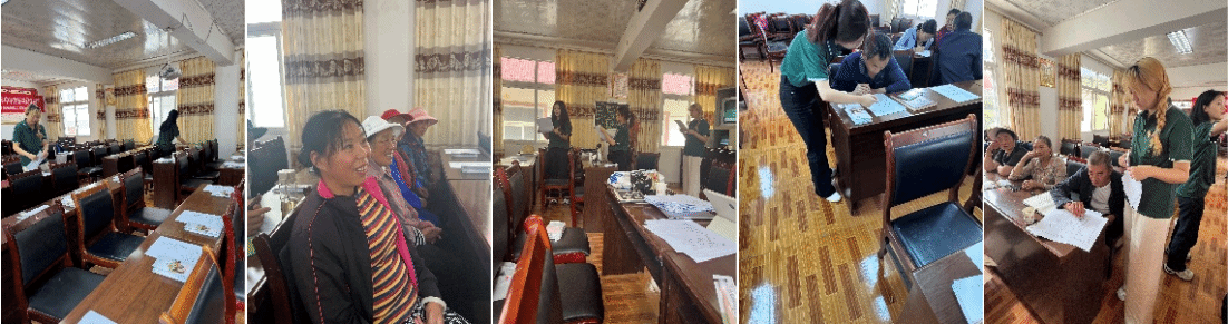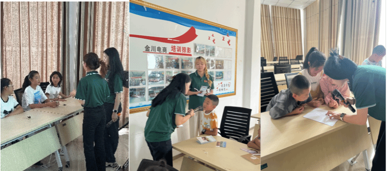 7月20日:村委会里学“话”忙,银龄课堂暖意浓 上午·方言对比学习:搭起沟通的桥 活动初始,汪茂洋、吴雨娜和金嘉睿分别用标准的普通话做自我介绍并邀请大家猜测意思。“她说她来自上海大学!”一位大妈抢答成功,接过奖品时,兴致勃勃地反馈教了成员们一句金川话:“金川是个好地方,风景秀丽。”成员们认真跟读,山风气息的方言与普通话交织,瞬间拉近了彼此距离。随后老人们跟着队员反复跟读“脑壳儿”“牛奶”等词语,发音从磕磕绊绊到逐渐清晰。最后,三位志愿者演绎情景剧《买牛奶》,在“买两盒浓牛奶”“谢谢光临”的对话中,老人们跟着念叨“牛是n,流是l”……参与的村民们争相用普通话答题,获得了小奖品的他们脸上满是成就感。
